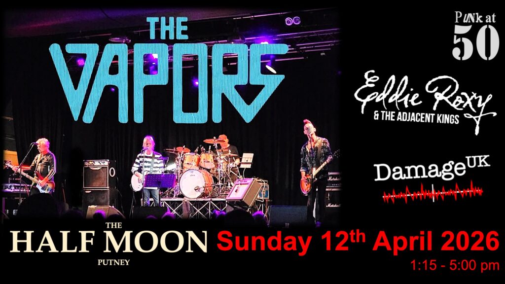 Following the London support gig with The Skids, we’re pleased to confirm that the band are coming back to the capital for their own headline show in April. They are returning to the Half Moon in Putney, the venue where their reformation was kick-started back in 2016, to play a matinee show on Sunday 12th April from 1pm to 5pm. Special guests for the gig will be Eddie Roxy & The Adjacent Kings and Damage UK. The last Sunday afternoon show there was packed & great fun. Tickets are onsale now here